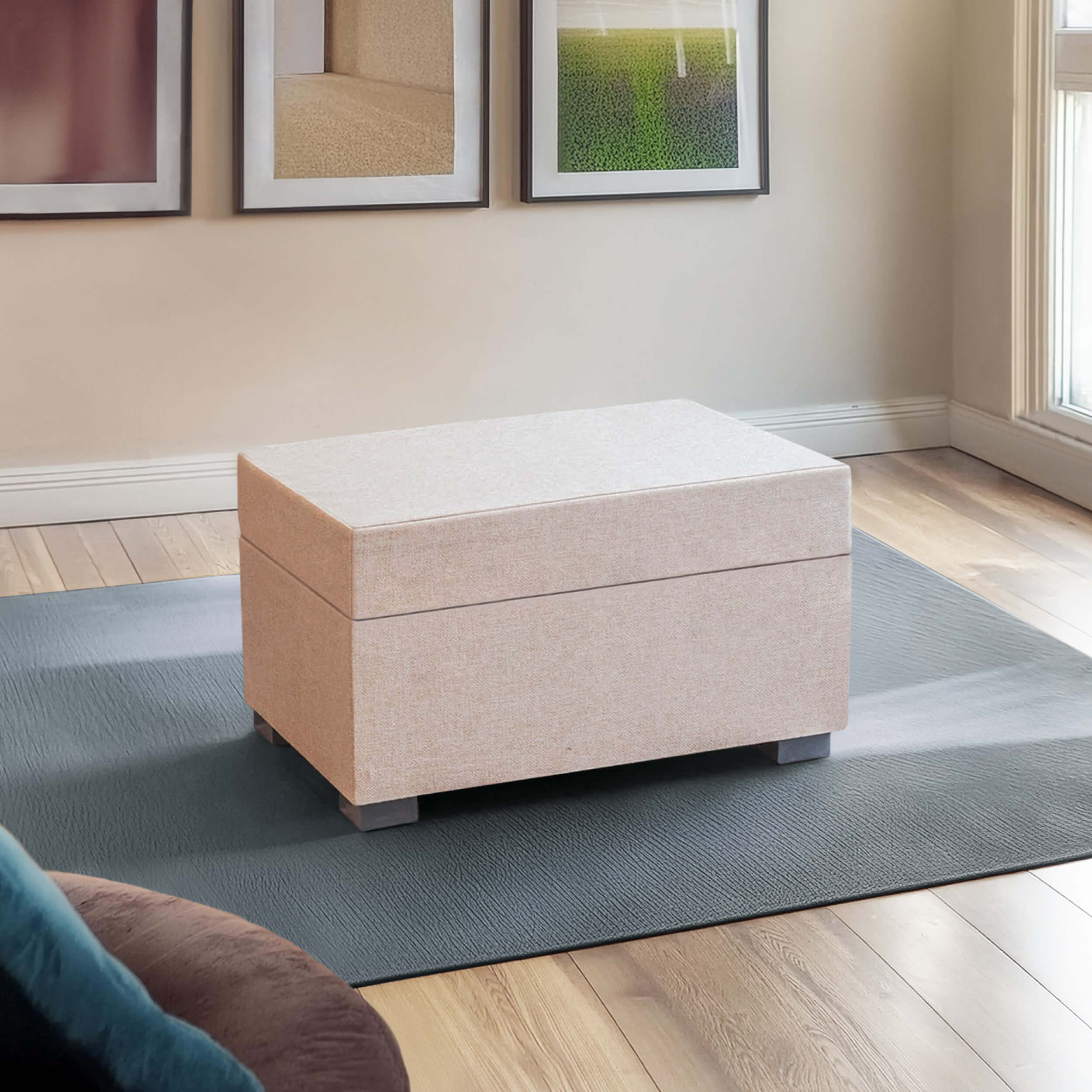 Alto total: 50cm. Ancho: 50cm. Largo: 80 cm. Soporte base de espuma de poliuretano de alta densidad cuya rigidez permite utilizar la mesa como apoyo para todo tipo de usos. Disponible en Chenille o Ecocuero.